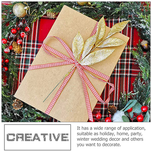 10pcs Glitter Artificial Pine Leaves Stem Branch Christmas Tree Picks Cedar Spray for Xmas Garland Wreath Home Winter Decoration